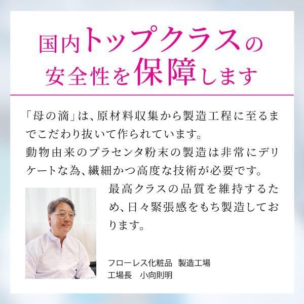 業界最高水準98.8%のタンパク質量を誇るスーパープラセンタサプリメント。 低分子化により吸収率に優れています。健康食品GMP工場にて製造しておりますので、安定した商品をお届けします。