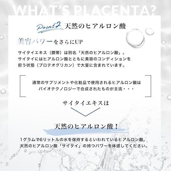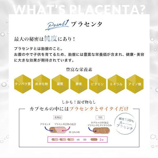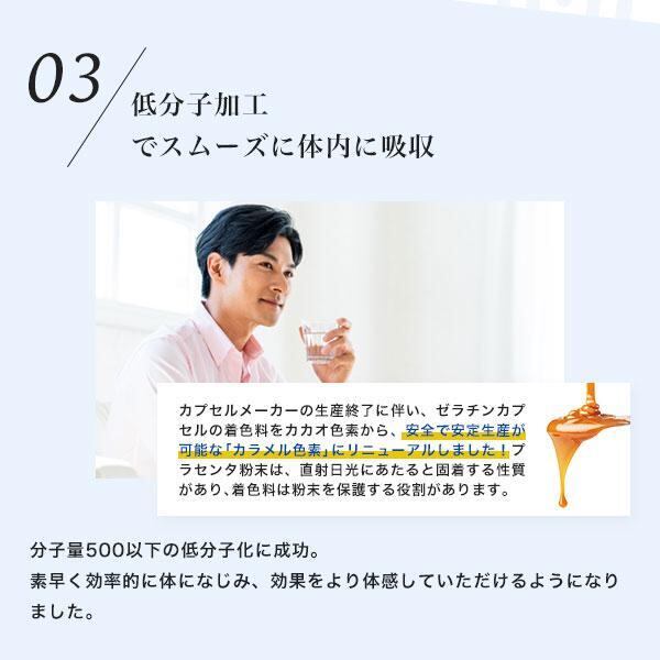 業界最高水準98.8%のタンパク質量を誇るスーパープラセンタサプリメント。 低分子化により吸収率に優れています。健康食品GMP工場にて製造しておりますので、安定した商品をお届けします。