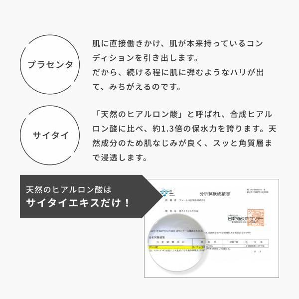 水、センチフォリアバラ花水、BG、グリセリン、(アクリル酸ヒドロキシエチル/アクリロイルジメチルタウリンNa) コポリマー、スクワラン、ポリソルベート60、グリチルリチン酸2K、アラントイン、プラセンタエキス(ウマ)、サイタイエキス(ウマ)、ヒトオリゴペプチド-1、アセチルヒアルロン酸Na、ヒアルロン酸Na、加水分解コラーゲン、ポリグルタミン酸、銀、ダマスクバラ花油、アルゲエキス、ポリ-γ-グルタミン酸Na、キハダ樹皮エキス、ローズマリー葉エキス、ラベンダー花エキス、ダイズ種子エキス、エタノール