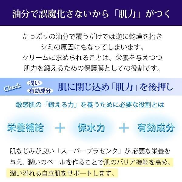油分を最低限に抑え、スーパープラセンタをたっぷり配合することにより、 サラリとした付け心地なのに内側からしっとりと潤うハリ肌に導きます。